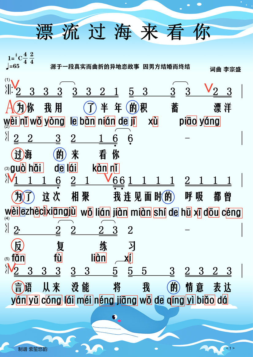 《漂洋过海来看你》歌词加拼音