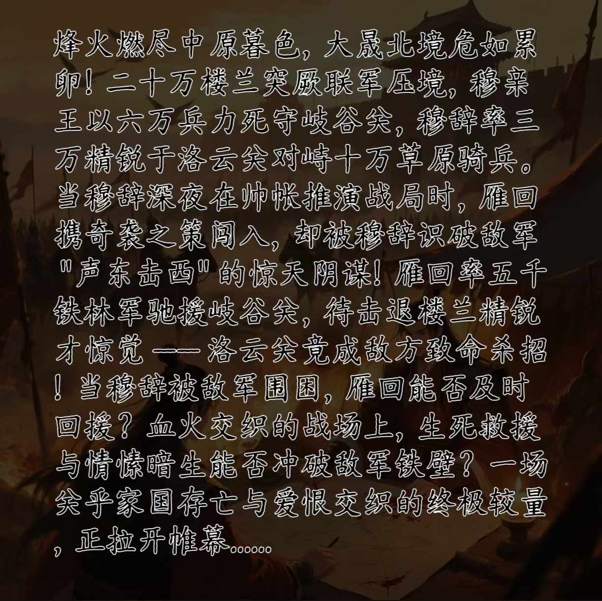 穆辞:关外突厥营地这几日又增了不少军帐,看来.....