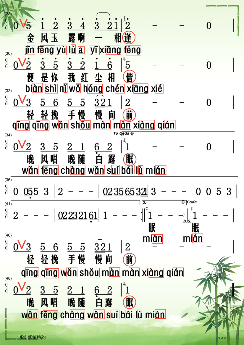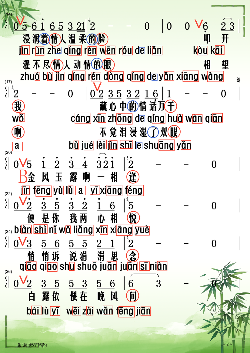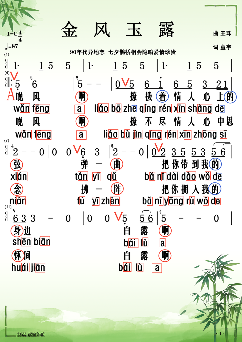 《金风玉露》歌词加拼音版