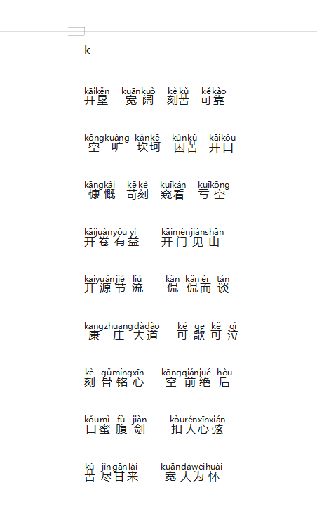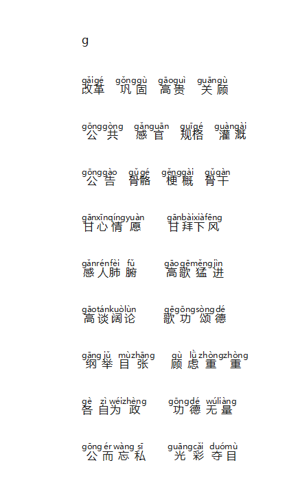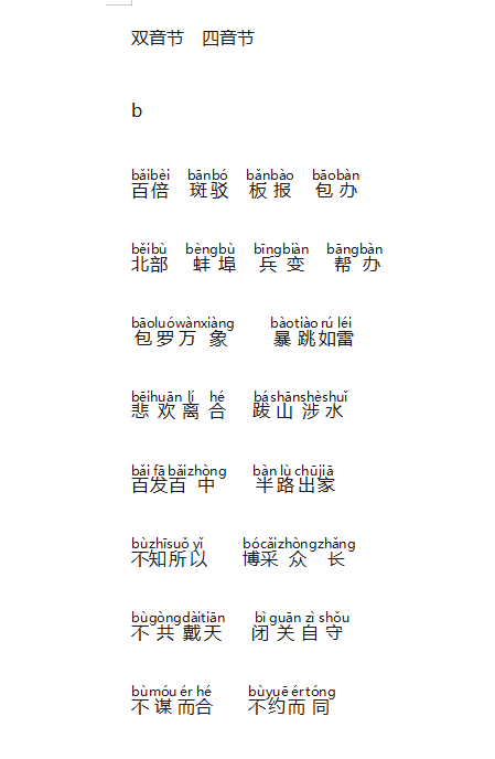 雲汉专用吐字归音双音节四音节词组练习
