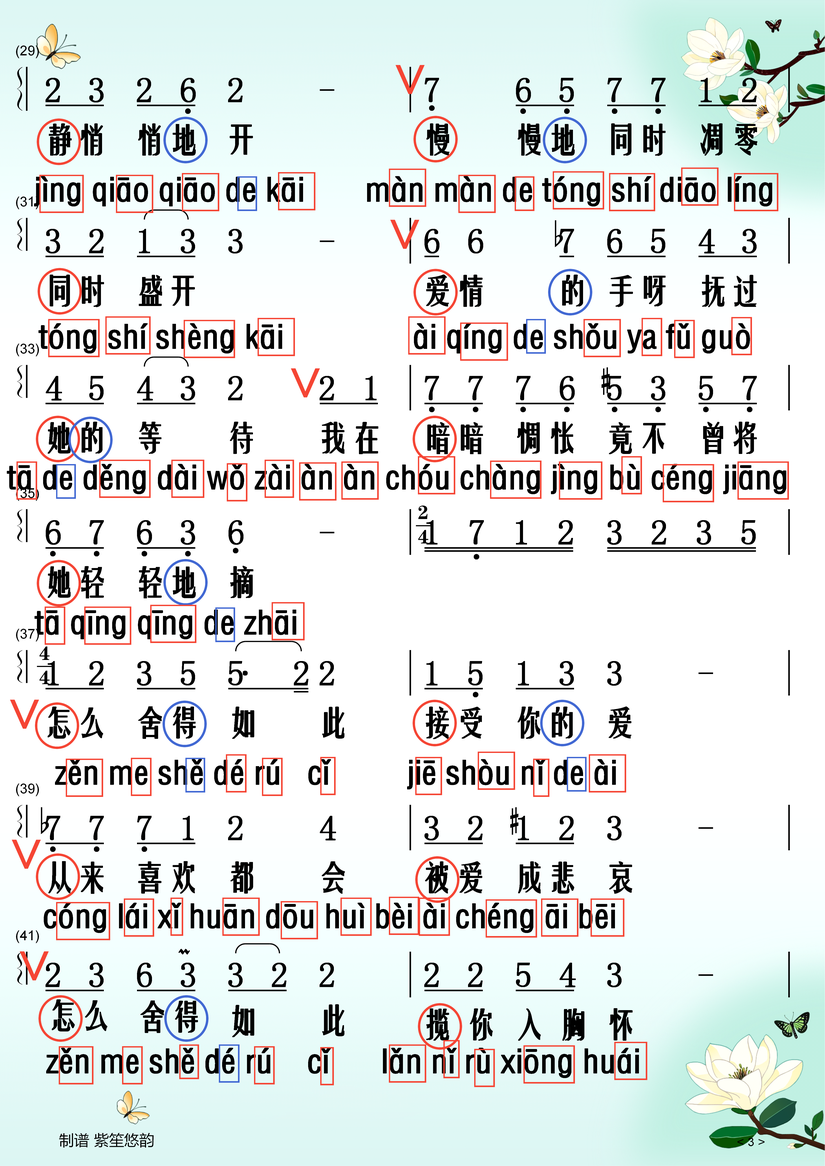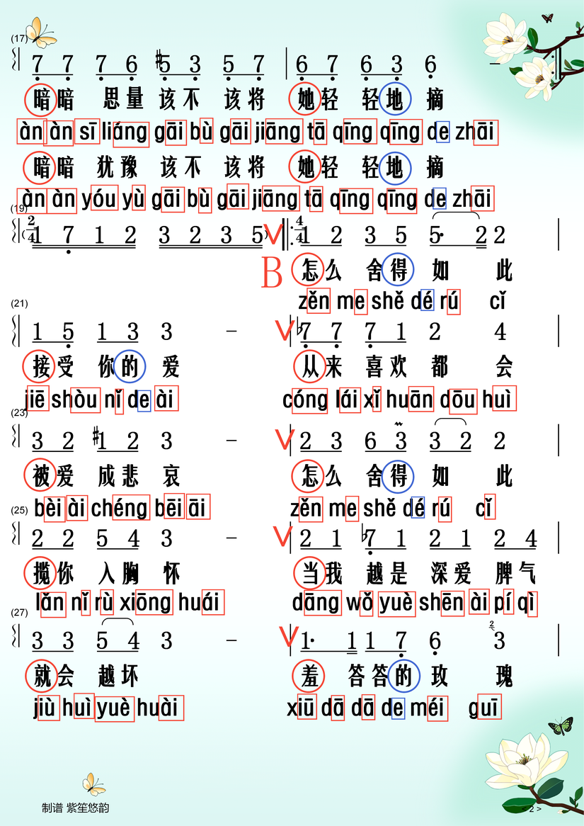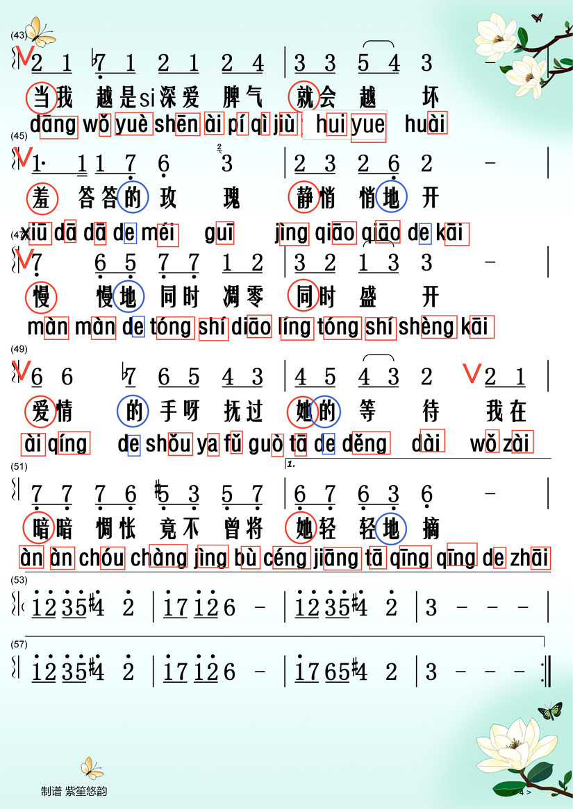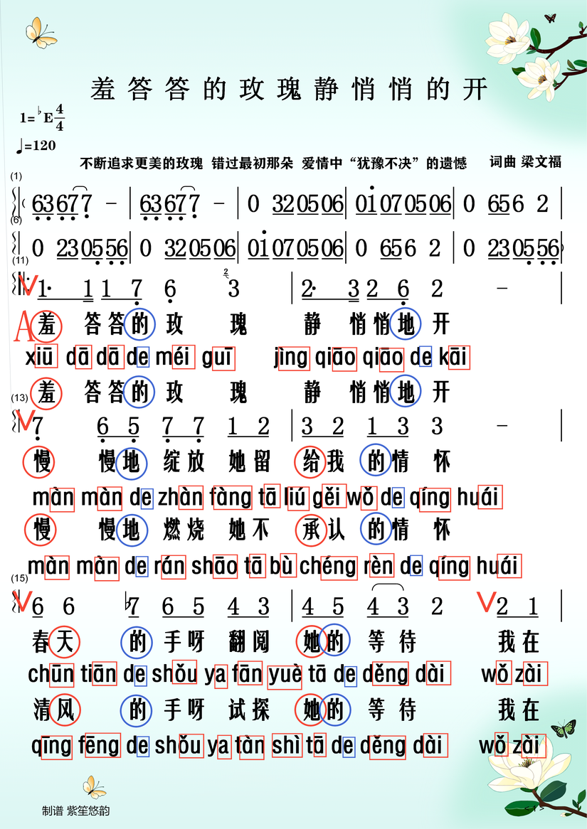 以下是《羞答答的玫瑰静悄悄地开》带拼音的歌词: