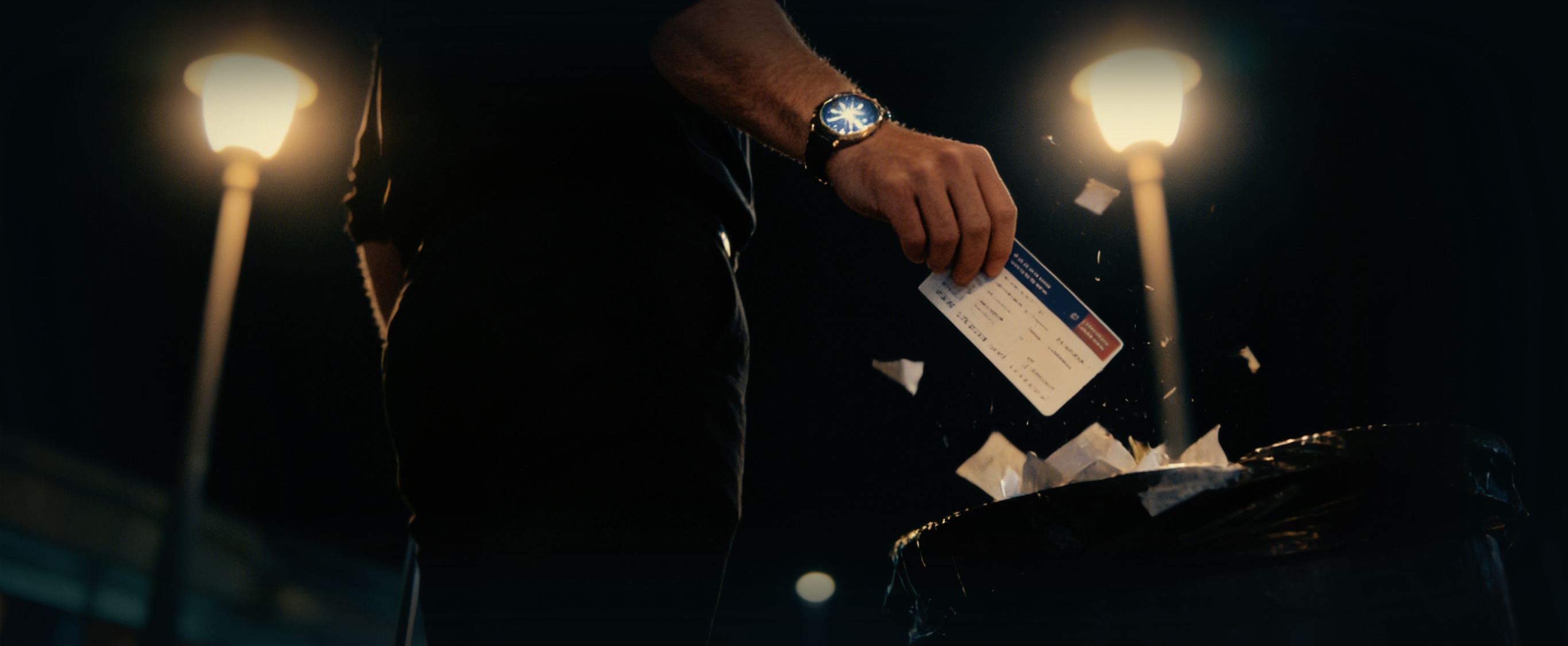 ( 他笑了笑,把登机牌撕碎,扔进垃圾桶)
